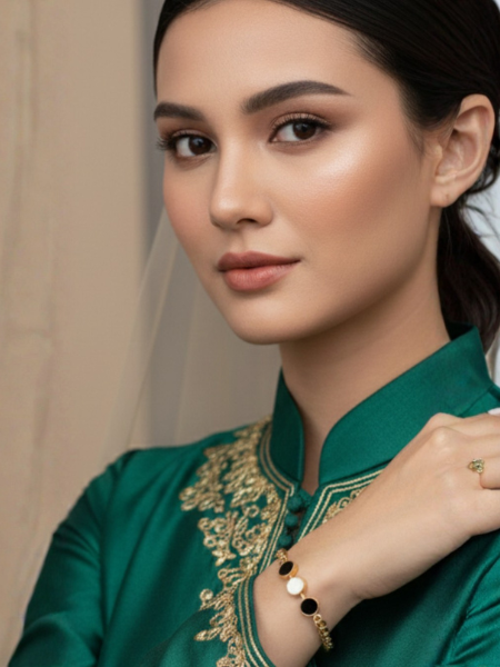 • The Versatility: This bracelet holds its own even when paired with heavy ethnic wear (like an Emerald Green formal suit), adding a touch of modern chic to a traditional look.